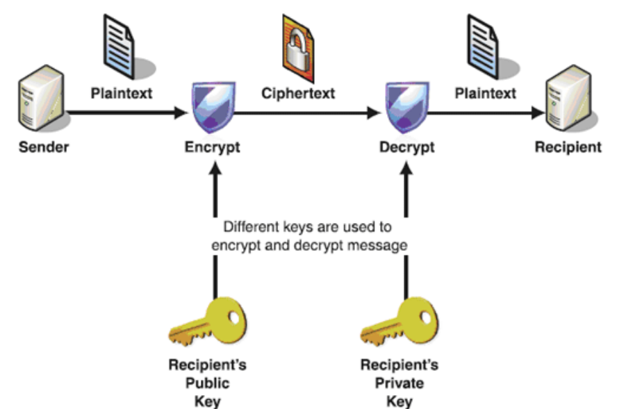 수신자의 공용키로 암호화하고, 수신자의 개인키로 복호화를 한다.