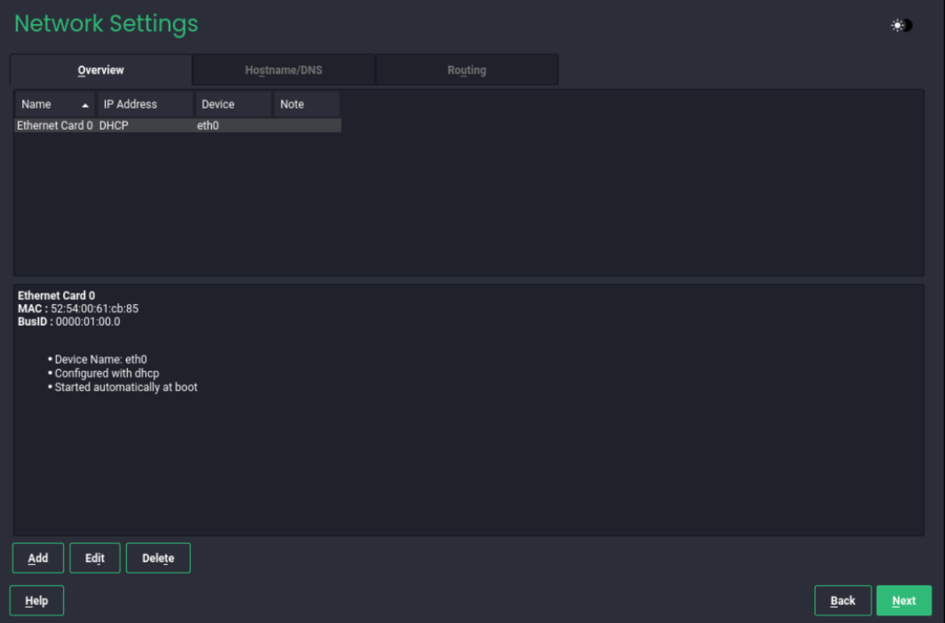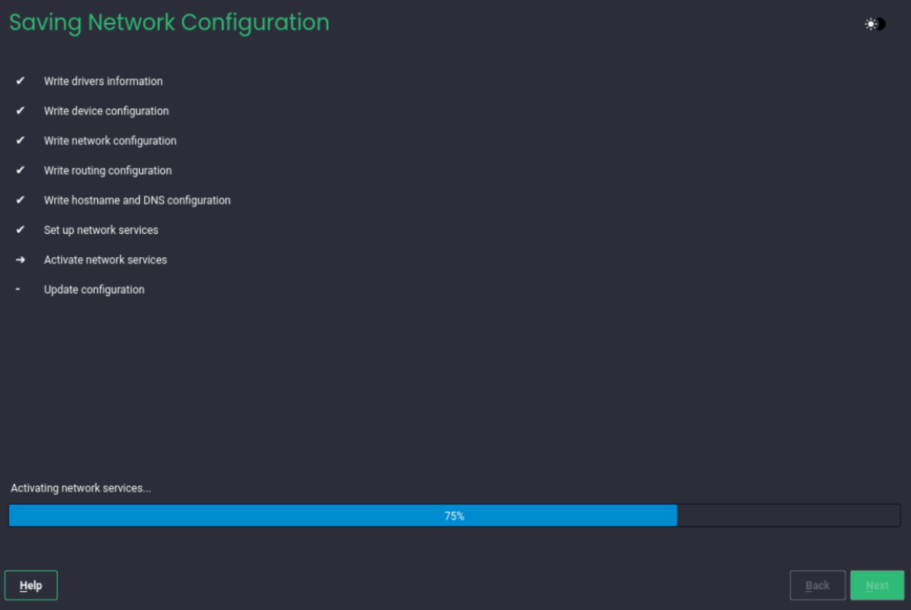 서비스 선택 관련 창에서, 오른쪽 윗 상단에 Network Configuration 창이 있습니다. 여기서는 사용자가 원하는 네트워크 설정을 할 수 있습니다. Hostname도 설정이 가능합니다.