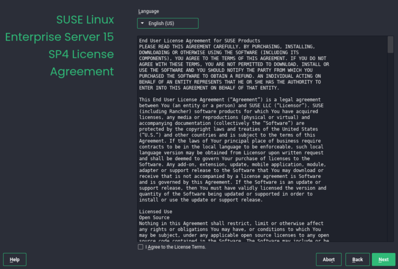 구분 됩니다. 각 목적마다 기본적으로 설치되는 패키지가 다른 점이 있습니다. 이 글에서는 첫번째 항목인 SUSE Linux Enterprise Server 15 SP4로 선택 했습니다. 언어와 키보드 역시, 아래 사진처럼 진행 했습니다.