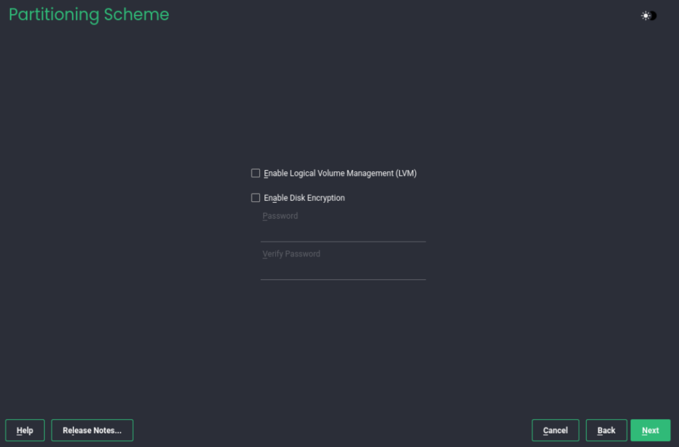 | Propose Seperate Home LVM Logical Volume | 별도의 /home 파티션을 원하는지를 묻습니다. 홈 파티션의 이점은 모든 사진 비디오 및 기타 문서를 별도의 홈 파티션에 저장하고 OS 및 소프트웨어는 주로 / 또는 루트 파티션에 저장된다는 것입니다. 이렇게 가지고 있으면 배포가 쉬울 것입니다. 또는 OS를 다시 설치해야 하는 경우에도 /(루트) 파티션을 포맷하기만 하면 모든 데이터가 저장되므로 백업할 필요가 없습니다. 그러나 단점은, 루트 권한이 없어도 /home에 접근할 수 있습니다. |