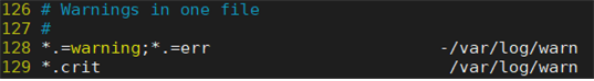 *.=warning;*.=err -/var/log/warn