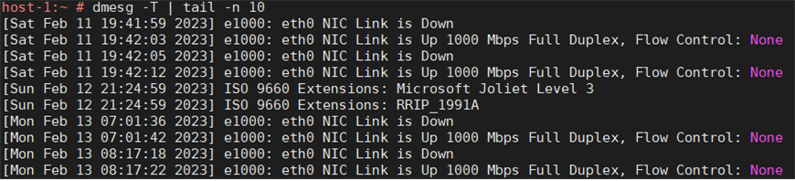 알아둬야 할 점은, demsg가 나타낸 시간과 /var/log/messages의 시간이 다를 수 있다.