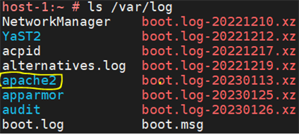 | 실제로 서비스 파일을 설치하면 자동으로 /var/log 밑에 추가가 된다. 웹 서버 서비스를 설치하니, /var/log밑에 apache2가 추가 된 것을 볼 수 있다.